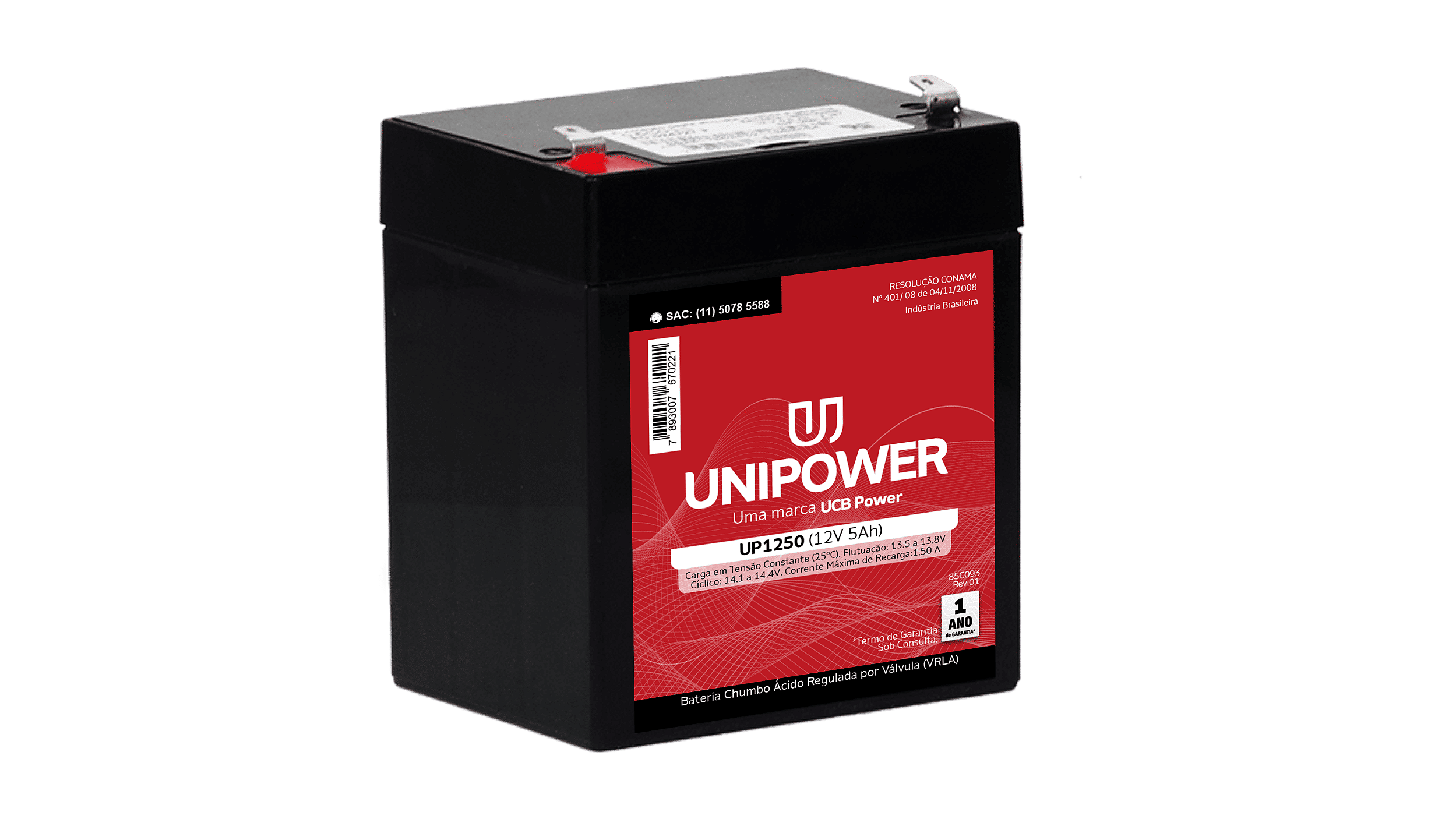 Com tensão de 12V e capacidade de 5.0Ah, a UP1250 fornece a autonomia necessária para momentos críticos. Seus terminais do tipo Faston 187 facilitam a instalação, e sua construção selada livre de manutenção proporciona tranquilidade e durabilidade. Invista na qualidade Unipower para proteger seus dispositivos.